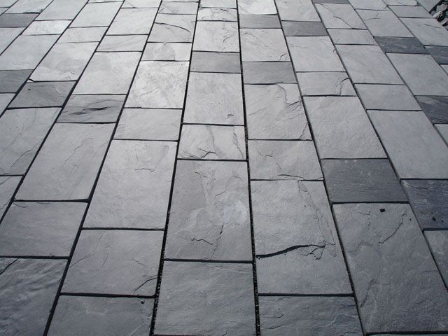 Một giải pháp dễ dàng để có một đường dạo đẹp cho sân vườn là lát đá phiến kiểu cổ điển. Đá phiến có thể được lát theo kiểu đan rổ, sole, cài răng lược với viền gạch hoặc đá trang trí khác.